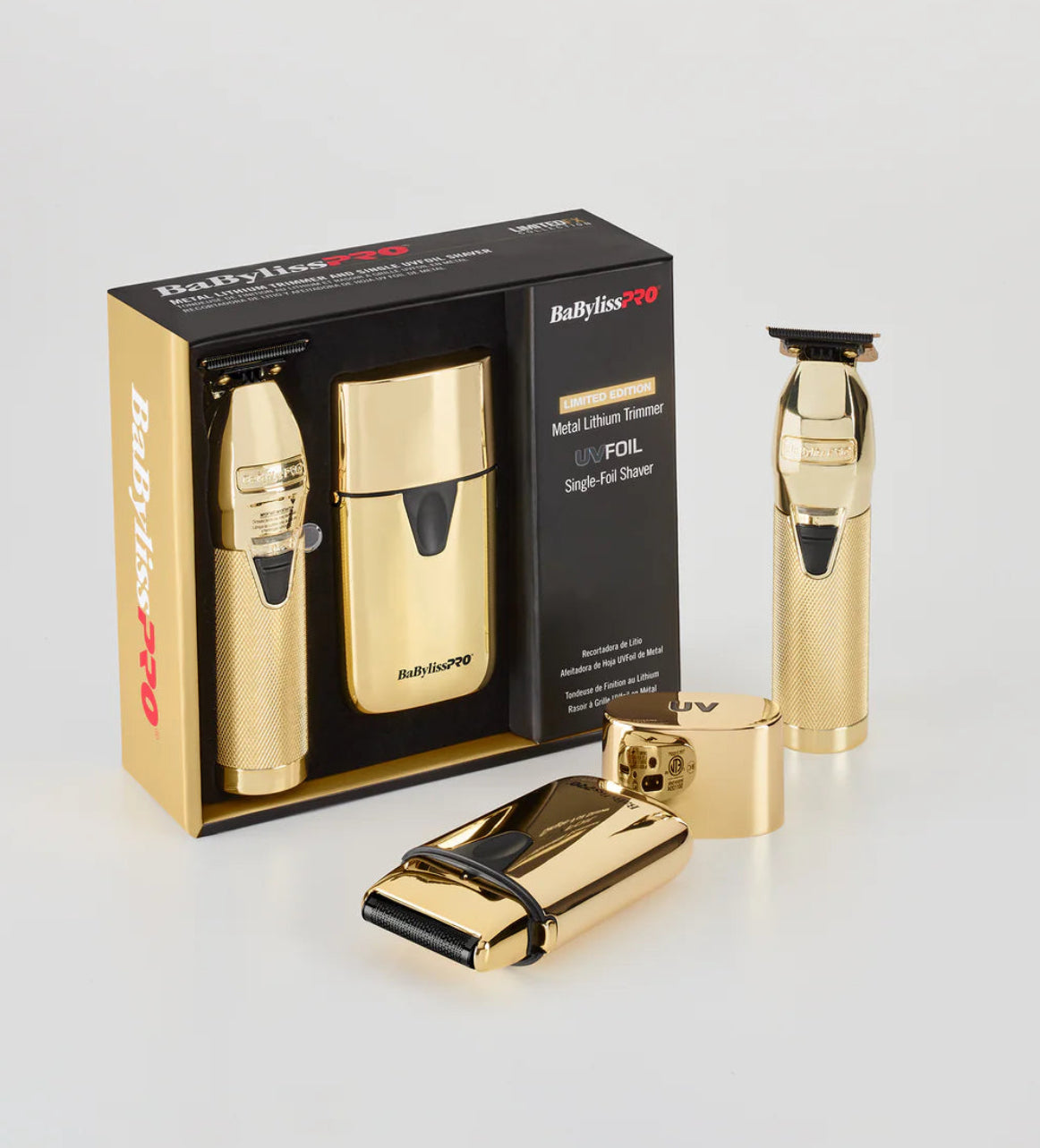 BaBylissPRO Gold Metal Trimmer & UV Single Foil Shaver (FXLFHOLPKG)